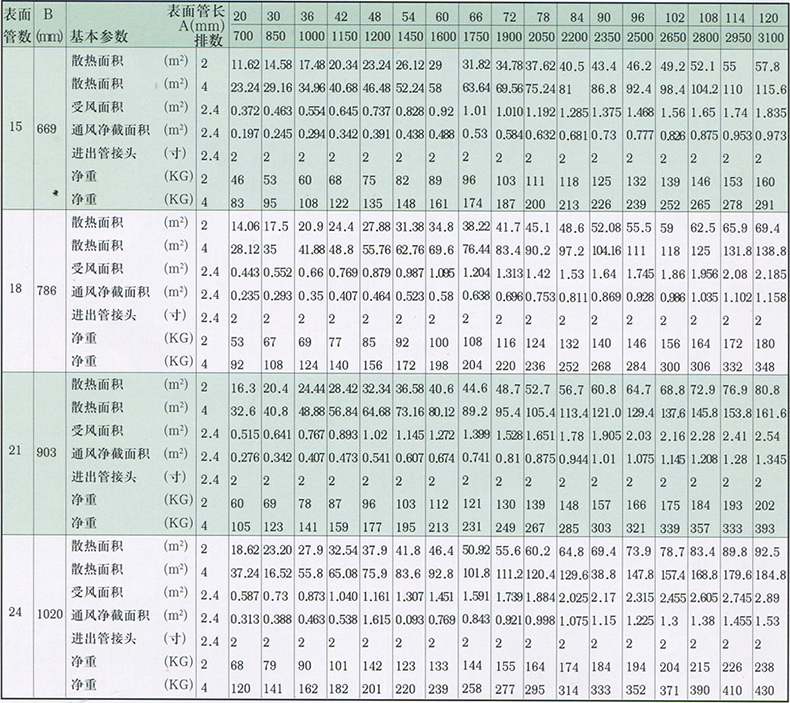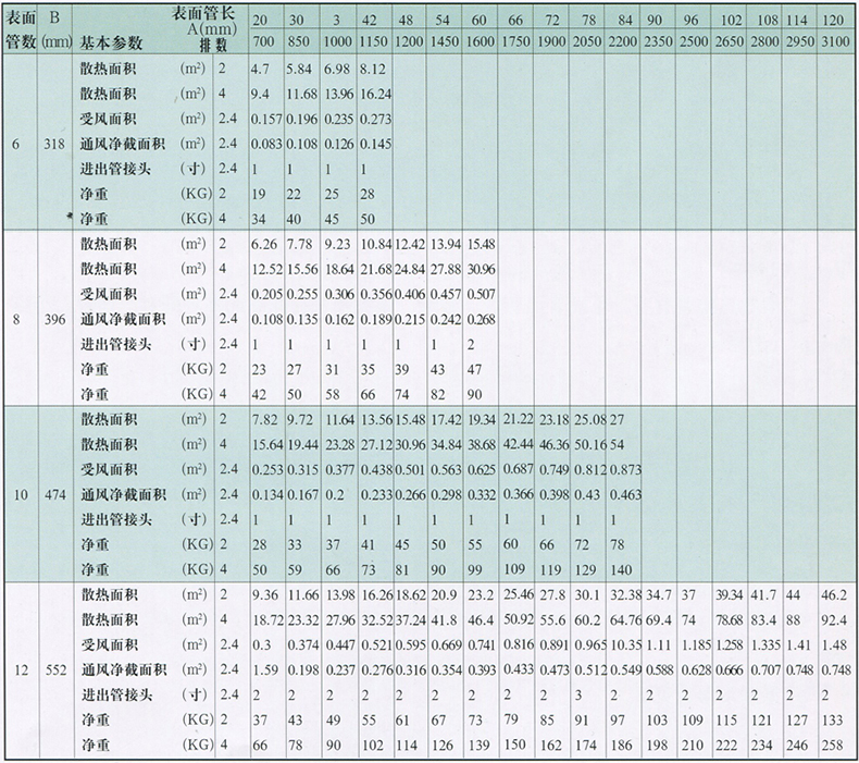 如采用四排,表面管數(shù)為10,管長為42英寸時,則為GLⅡ-4-10-42。